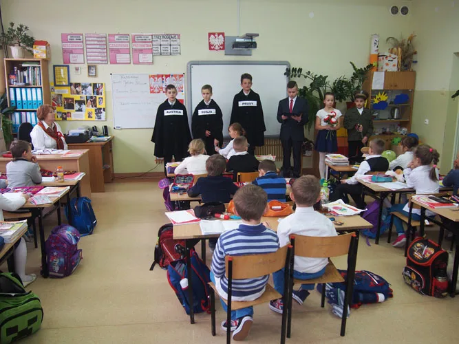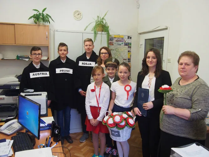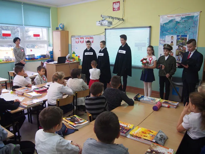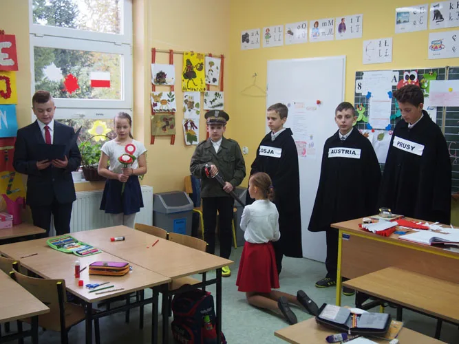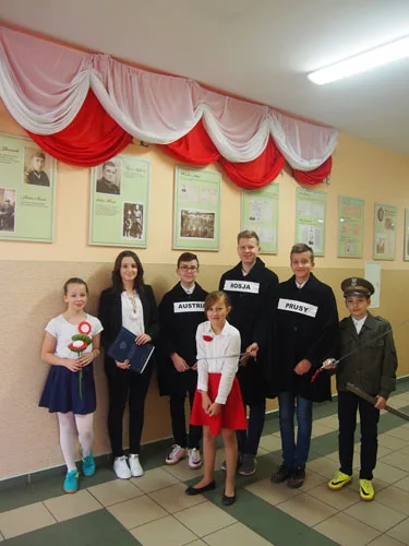 11 listopada jest więc jedną z ważniejszych dat w naszej historii, dlatego też ten dzień był uroczyście świętowany w naszej szkole. W centralnych miejscach zostały ustawione galerie, które przypomniały najważniejsze wydarzenia i postaci związane z walką o niepodległość. Pamiętaliśmy również o naszych przodkach, którzy walczyli o wolność, a których portrety znajdują się na naszych szkolnych korytarzach. Ponadto w każdej klasie pojawiła się grupa teatralna, która przedstawiła krótką inscenizację na temat polskiej drogi do wolności. Uczniowie zawitali również do Urzędu Gminy w Czarnym Borze, aby świętować wspólnie z władzami gminy i wszystkimi pracownikami. Tam również przedstawili swoją inscenizację, a na pamiątkę swojej wizyty pozostawili biało - czerwone, własnoręcznie wykonane kwiaty, które ozdobiły gabinety urzędu.