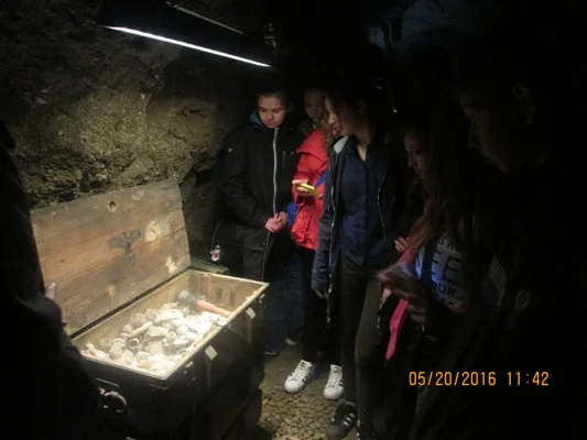 Dbając o wszechstronny rozwój intelektualny naszych uczniów staramy się zapoznawać ich z dorobkiem kulturowym najbliższego regionu. Temu też celowi służą wyjazdy do muzeów, organizowane dwa razy do roku, głównie dla klas pierwszych gimnazjum. W ramach wiosennego wyjazdu odwiedziliśmy ostatnio kamiennogórskie ARADO- tajne laboratorium Hitlera. Uczniowie najpierw przeszli przez ciężką musztrę pod kierunkiem oficera wywiadu polskiego, a następnie ruszyli śladami tajemnic hitlerowskich , które przeprowadziły ich przez podziemia kamiennogórskiej Góry Parkowej. Poznali również historię więźniów, którzy zmuszani byli do pracy przy drążeniu tuneli i ich warunki życia. Wyjazd wszystkim dostarczył niezapomnianych wrażeń i z całą pewnością nauczył nas wiele na temat realiów życia w okresie hitlerowskiej niewoli.