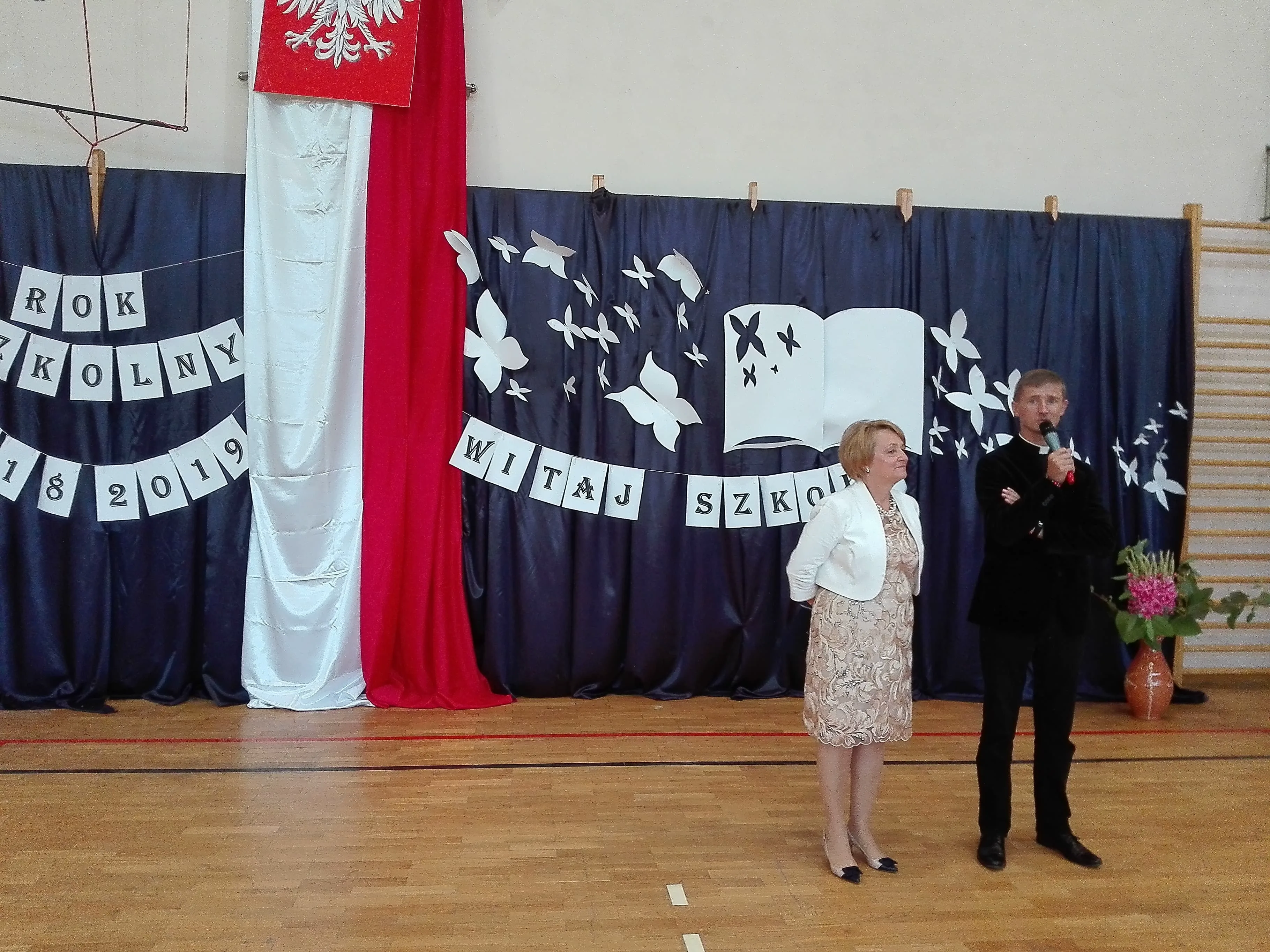 Po krótkiej części artystycznej dyrektor GZSzP pani Anna Dziewit wystąpiła z okolicznościowym przemówieniem. Następnie wręczyła nagrody jubileuszowe p. Grażynie Nir, p. Ewie Góreckiej oraz p. Marzannie Glazar - Kwiecień, jednocześnie dziękując za wiele lat wspaniałej pracy na rzecz uczniów, szkoły oraz środowiska lokalnego. Na zakończenie pani dyrektor życzyła uczniom wytrwałości w nauce oraz licznych sukcesów w nowym roku szkolnym, a nauczycielom wielu powodów do dumy ze swoich uczniów oraz satysfakcji z wykonywanej pracy. Do powyższych życzeń dołączyli się również wójt gminy Czarny Bór – pan Adam Górecki oraz proboszcz ks. Paweł Oskwarek, który równocześnie podziękował wszystkim obecnym za kończącą się 5-letnią współpracę w trakcie trwania jego posługi duszpasterskiej w parafii.