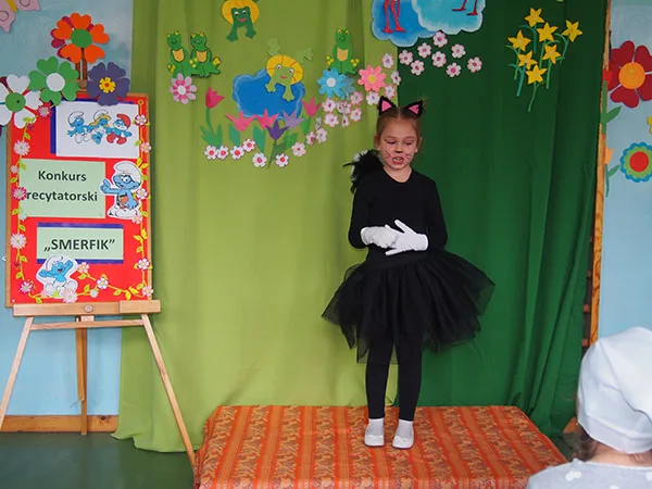 Dzieci pięknie recytowały, a komisja oceniająca w składzie – Pani Dyrektor Anna Dziewit, Marta Borcoń i Barbara Gryka, miała trudne zadanie wybrać najlepszych z najlepszych. Ostatecznie wszyscy recytatorzy dostali wyróżnienia i otrzymali figurki Smerfików a dyplomy laureata otrzymali: