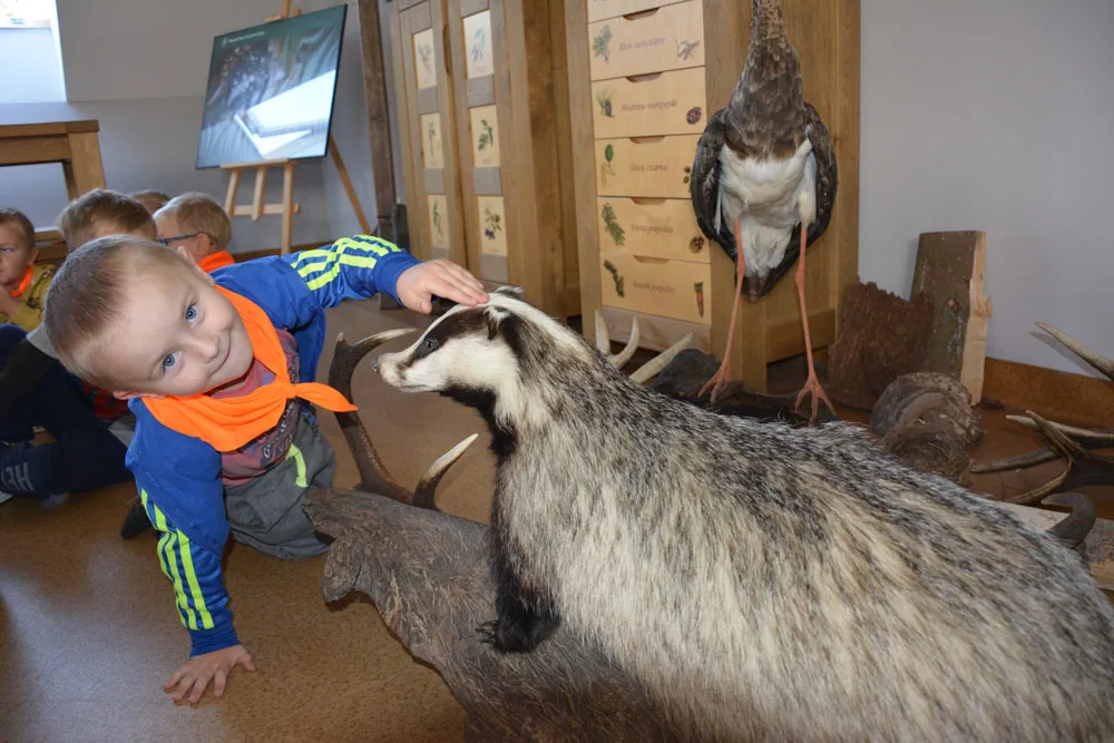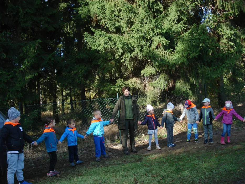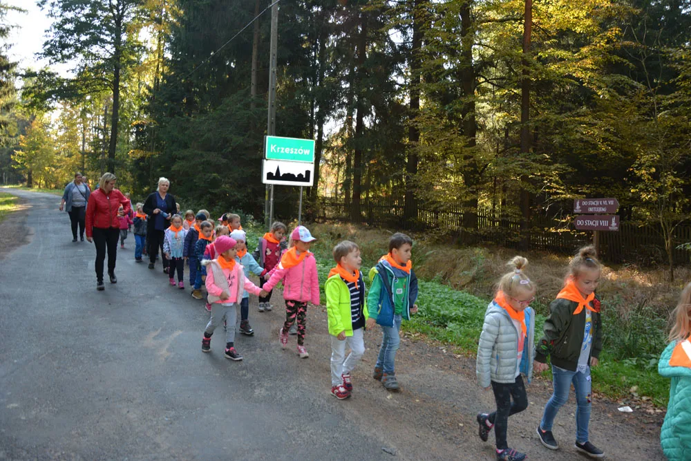 W dniach 9 i 10 października 2018 zorganizowane zostały wycieczki przedszkolaków do leśniczówki w Krzeszowie. We wtorek pojechały dzieci z grupy „Żabek i „Motylków”, natomiast w środę „Krasnoludki” i „Pszczółki”. Po przybyciu na miejsce, dzieci zostały przywitane przez panią leśniczy – Dorotę Stodolak, która oprowadziła je po terenie leśniczówki. Przedszkolaki dowiedziały się, co to jest szkółka leśna i słuchały ciekawych opowiadań o zwierzętach żyjących w lesie. Piękna jesienna pogoda sprawiła, że wycieczka po lesie przyniosła dzieciom wiele radości. Szukanie „skarbów jesieni” było dla nich nie lada wyzwaniem. Wyposażone we wiaderka maluchy zbierały kolorowe liście, szyszki, patyki i żołędzie. Zebrany materiał posłużył do zabaw sprawnościowych. Dzieci pełne wrażeń powróciły do przedszkola. Dziękujemy pani leśniczy Dorocie za gościnę i wspaniałe zajęcia edukacyjne dla dzieci oraz rodzicom za pomoc w opiece nad dziećmi podczas obu wycieczek.Wycieczki zorganizowały nauczycielki Anetta Włodarz i Małgorzata Czopek – Uszko oraz Elżbieta Chylińska i Grażyna Szczepaniak.