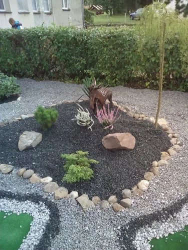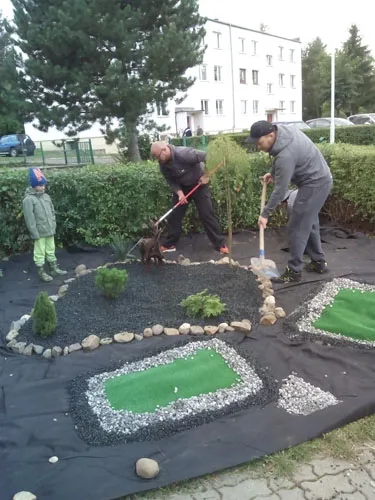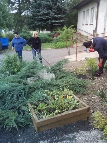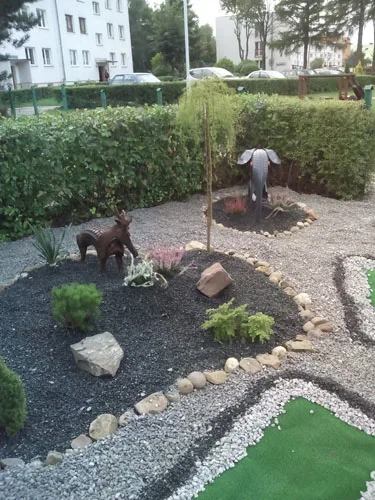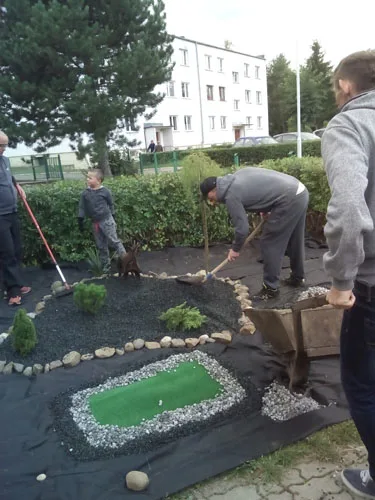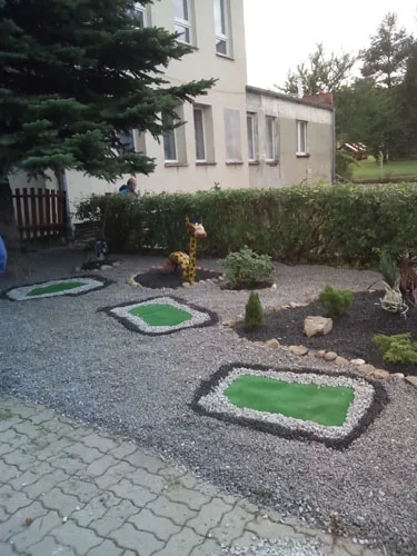 We wtorek 20 września w godzinach popołudniowych rodzice, dzieci sześcioletnich i wychowawcy grup „Zajączków” i „Misiów” zebrali się w celu upiększenia skwerku przed przedszkolem. Dzięki dużemu zaangażowaniu pracujących, plac pokryły ozdobne kolorowe kamyki, pojawiły się zwierzątka wykonane z opon: zebra, żyrafa, słoń i jelonek. Na klombach wyrosły kolorowe wrzosy. Wygląd skwerku tak spodobał się dzieciom, że przed wejściem do przedszkola zatrzymują się, aby popatrzeć na mini ZOO, które niedługo wzbogaci się o misia, zajączka i ślimaka.