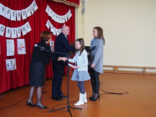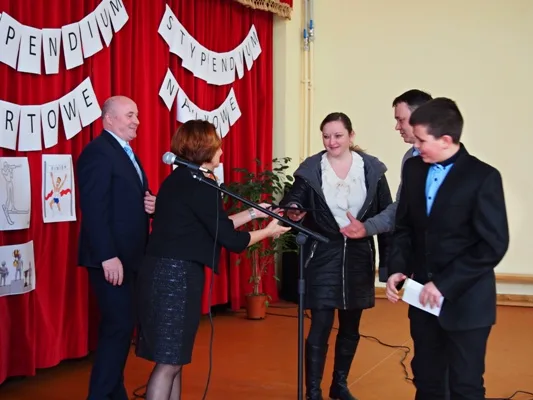 Spotkanie uświetnili swym występem uczniowie szkoły podstawowej, którzy pod kierunkiem nauczycielek, p. Teresy Śmiłowskiej i p. Anny Janik przedstawili krótki program artystyczny związany z tematem uroczystości. Następnie Dyrektor Gminnego Zespołu Szkolno - Przedszkolnego, p. Anna Dziewit oraz Wójt Gminy, p. Adam Górecki, wręczyli Najlepszym z najlepszych oczekiwane i zasłużone stypendia naukowe i sportowe a ich rodzicom, którzy uczestniczyli w gali, dyplomy gratulacyjne. W tym roku na stypendia zapracowali następujący uczniowie: