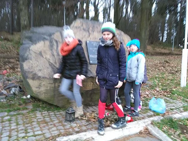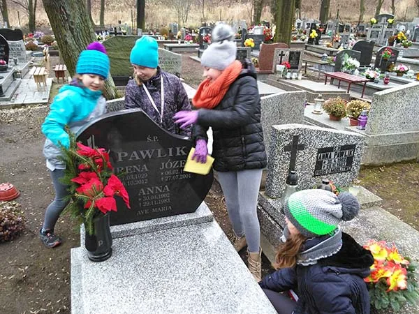 Przedświąteczne sprzątanie grobu patrona szkoły Józefa Pawlika w Wałbrzychu przez uczniów GZSzP i pomnika na stadionie a Czarnym Borze.