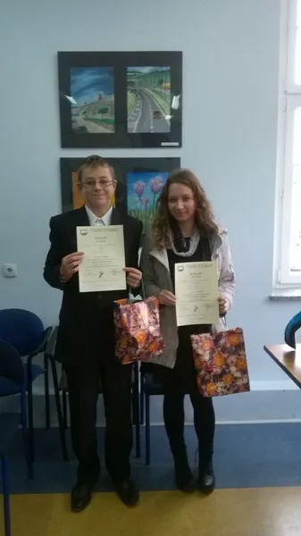Do konkursu przystąpiło łącznie 7 drużyn z Wałbrzycha i Kamiennej Góry. Uczniowie, w ramach zadań konkursowych, rozwiązywali rebusy, krzyżówki, łamigłówki i zagadki. 60-minutowe zmagania nasza drużyna w składzie Bartosz Mrówka z klasy IIc i Kornelia Gondek z klasy IIIb ukończyła na III miejscu. Serdecznie im gratulujemy i życzymy sukcesów w kolejnych konkursach.