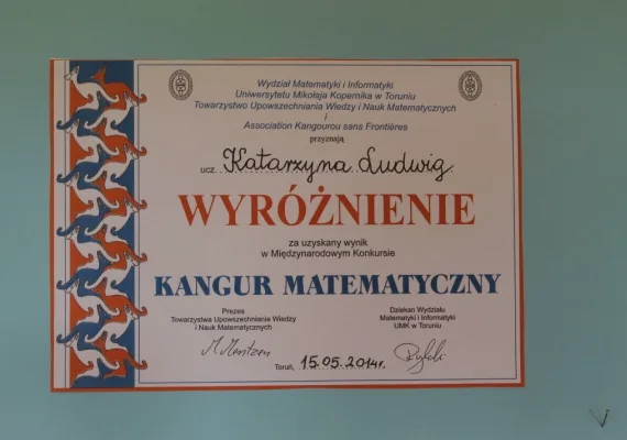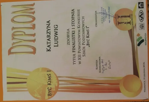 W klasyfikacji klas IV-VI Szkoły Podstawowej w roku szkolnym 2013/2014, prymusem została Katarzyna Ludwig, uczennica klasy VI b. Kasia ukończyła klasę VI z imponującą średnią ocen, która wyniosła: 5,8. Poza tym, nasza prymuska uzyskała maksymalną liczbę punktów na sprawdzianie klas VI i reprezentowała szkołę w licznych konkursach. A to jej osiągnięcia: wyróżnienie w konkursie Medi-Test, wyróżnienie w konkursie matematycznym Kangur, laureatka II stopnia w konkurs Być Kimś, laureatka powiatowego etapu konkursu zDolny Ślązaczek. Gratulujemy i życzymy dalszych sukcesów!