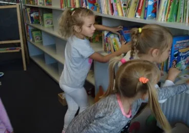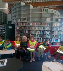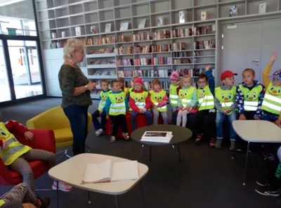 Pani bibliotekarka w przystępny sposób opowiadała o bibliotece i o zbiorach znajdujących się na półkach oraz zapoznała dzieci z regulaminem biblioteki. Przedszkolaki dowiedziały się także jak należy dbać o książki. Na zakończenie spotkania dzieci wysłuchały audiobooka ,,Kopciuszek” i otrzymały pamiątkowe zakładki do książek.