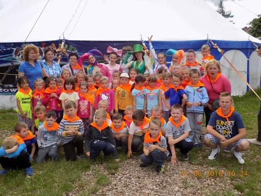 Wszystkich zachwyciły zręczne popisy akrobatyczne, jazda na jednokołowych rowerach i ćwiczenia ze skakankami. Dzieci miały również możliwość aktywnego uczestniczenia w zabawach iluzjonistycznych. Magik zachwycił widzów swoimi sztuczkami. Artyści zaprosili później dzieci do wspólnych zabaw animacyjnych przy muzyce, a na koniec wszystkich na smaczną pizzę. Wycieczka do Cyrklandu dostarczyła przedszkolakom wiele niezapomnianych wrażeń. Dzieci wspaniale się bawiły i zadowolone wróciły do domów. Relację z naszego pobytu w Miłkowie zamieszczono na Facebooku - konto Cyrkland .