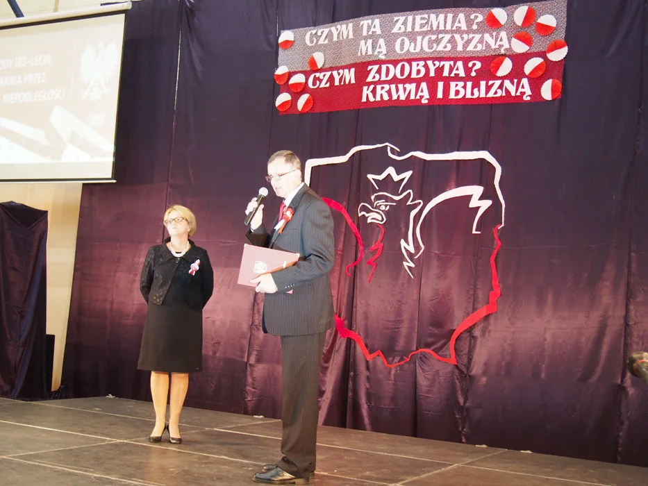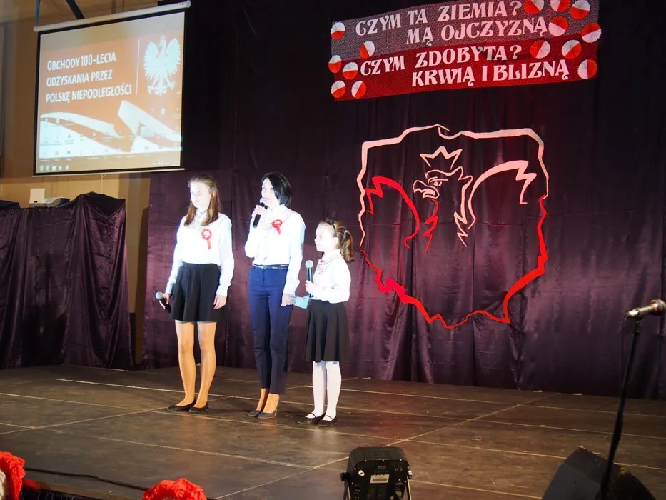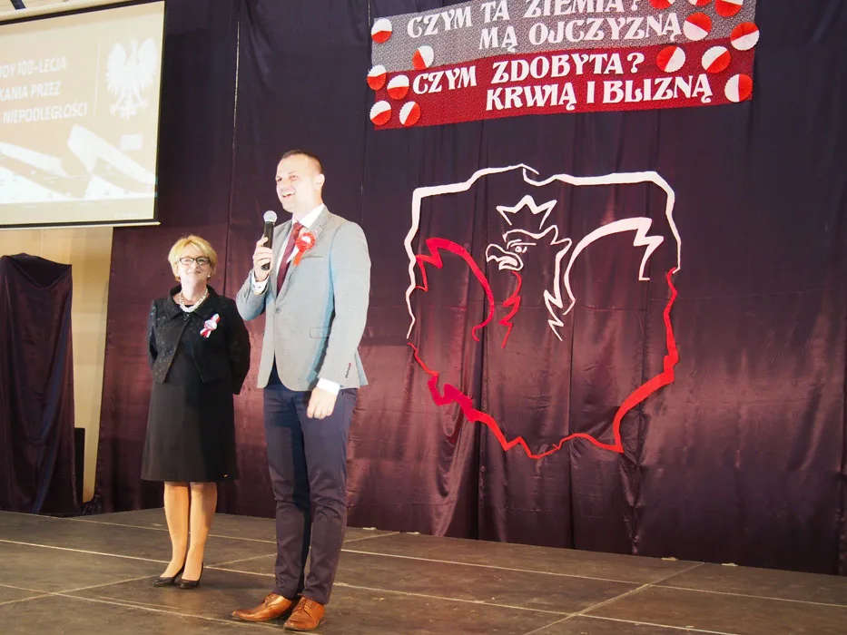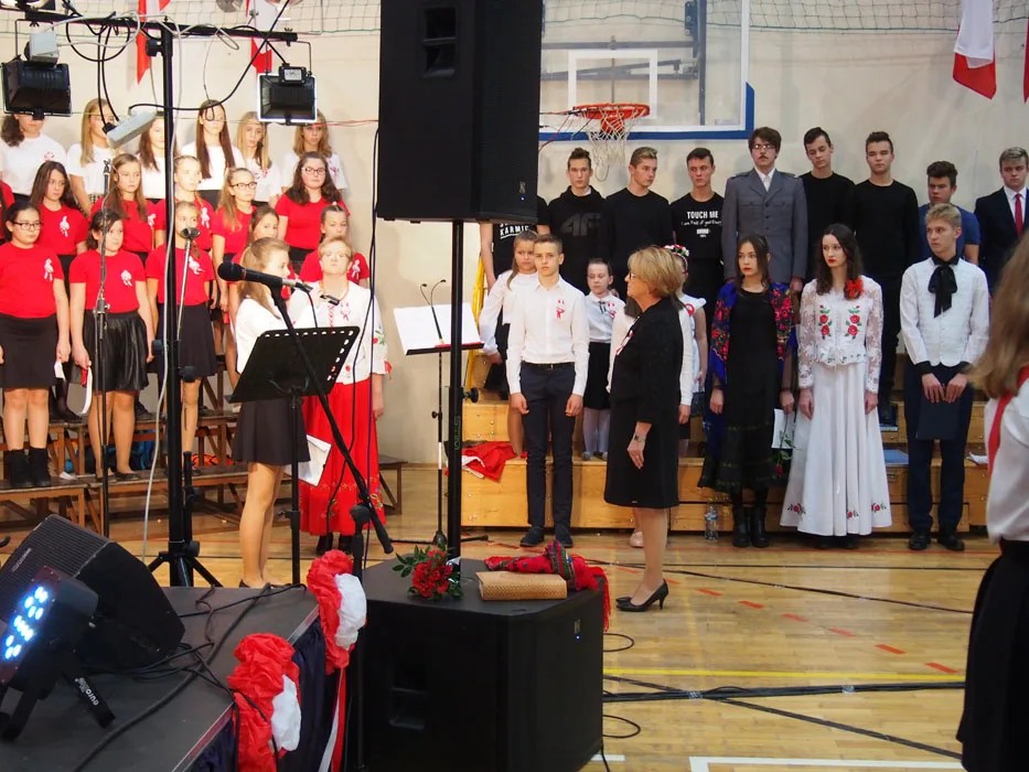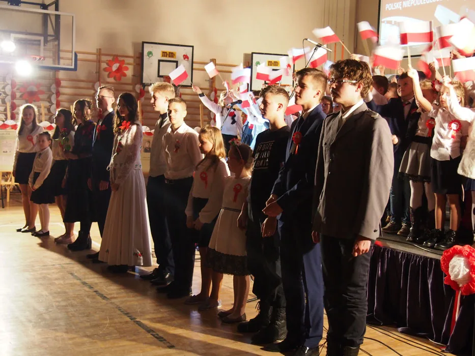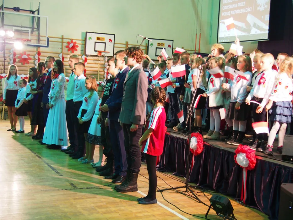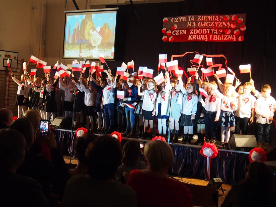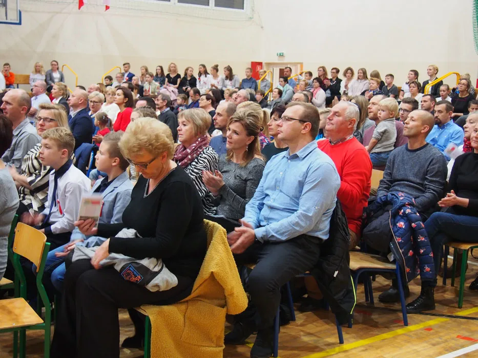 Tłumnie zgromadzeni mieszkańcy gminy mieli możliwość obejrzenia wzruszającego spektaklu, do udziału którego zaprosiliśmy również przedstawicieli naszej gminnej społeczności, bo historia łączy pokolenia. Oprócz uczniów na scenie występowali ich rodzice, dziadkowie, zespół Janicki oraz nauczyciele. W ten sposób, wspólnie, postanowiliśmy uczcić 100. rocznicę odzyskania przez nasz kraj niepodległości. Były wiersze, wzruszające pieśni w wykonaniu szkolnego chóru i solistów, prezentacje multimedialne dotyczące historii kraju, regionu i gminy, tańce oraz występy aktorskie naszych wychowanków. Przypomnieliśmy dzieje naszej Ojczyzny i jej zmagania o wolność, choć niekoniecznie tylko w smutnym i podniosłym nastroju.