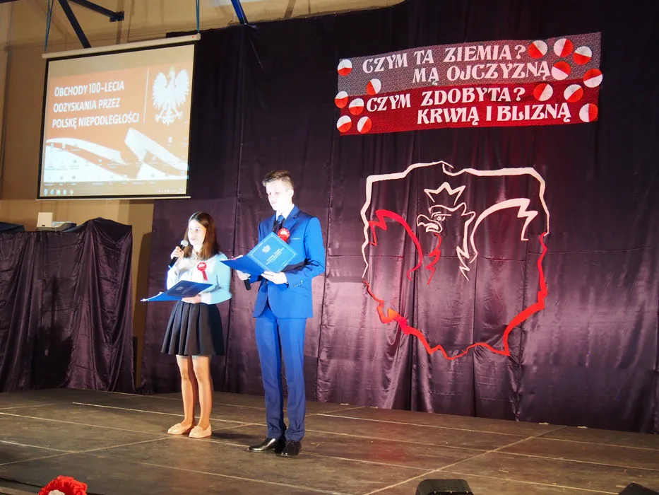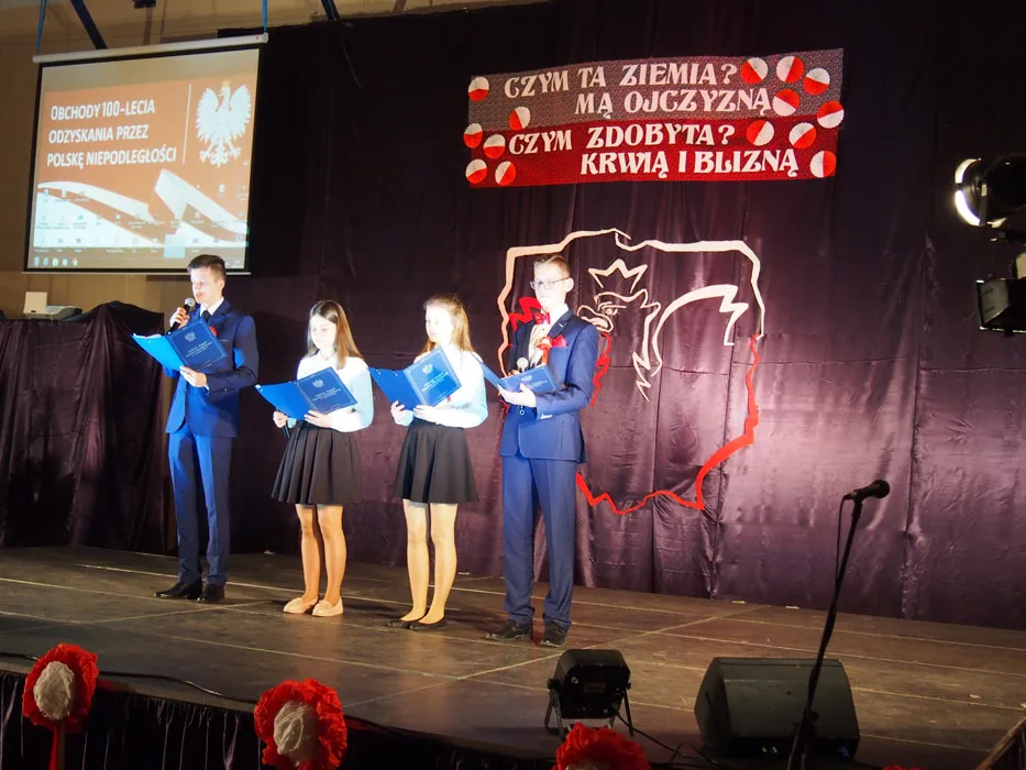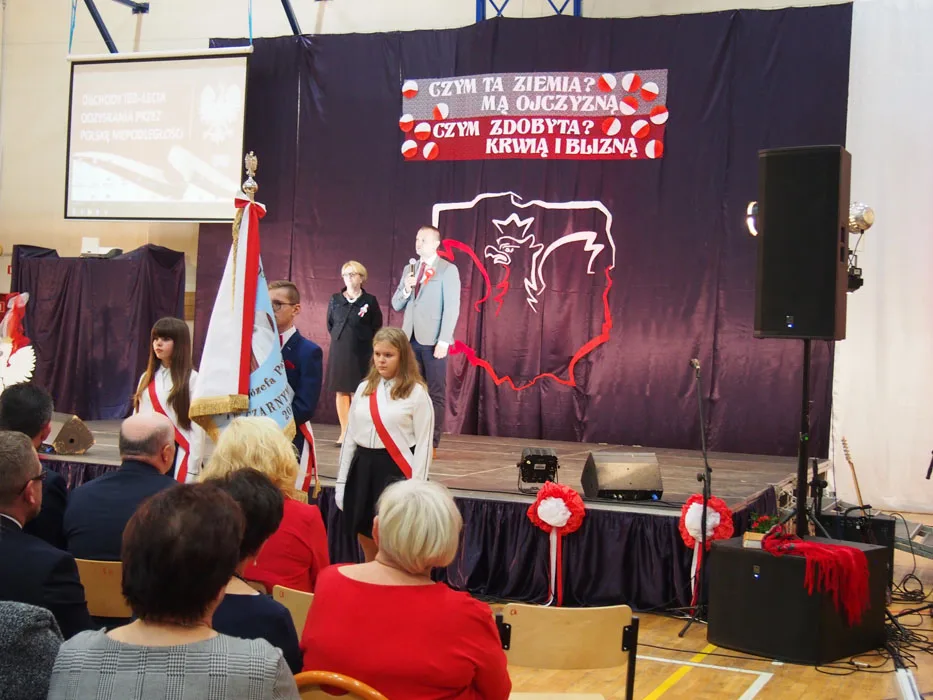 Narodowe Święto Niepodległości to dla Polaków jedno z najważniejszych świąt państwowych. Rok 2018 jest szczególny – to setna rocznica odzyskania przez Polskę niepodległości. Obchody tego święta w naszej gminie rozpoczęły się 10 listopada uroczystą Mszą Świętą w intencji Ojczyzny odprawioną w parafialnym kościele w Czarnym Borze. Następnie w hali sportowej GZSz-P odbyło się widowisko patriotyczne przygotowane przez nauczycieli i uczniów naszej szkoły.