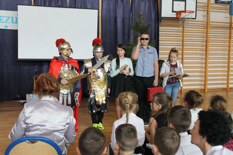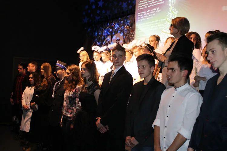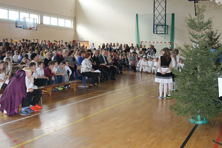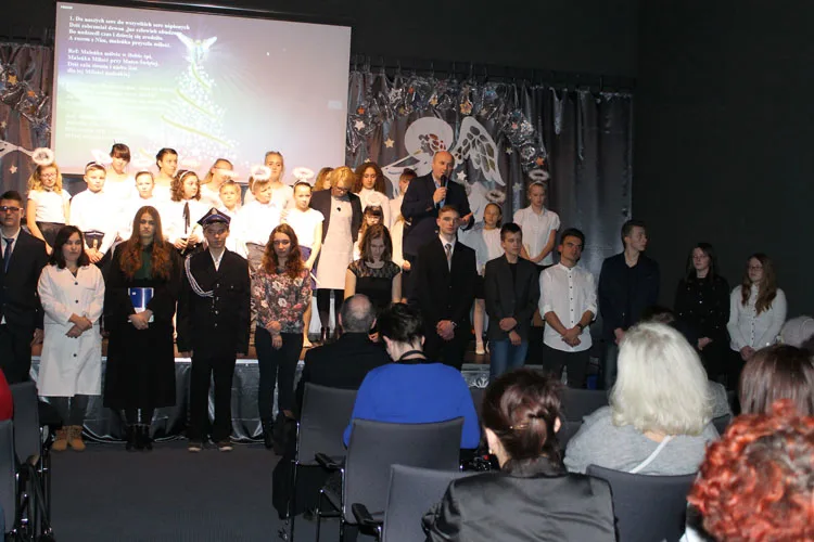 Dzień wcześniej w Centrum Kultury gimnazjaliści i absolwenci naszej szkoły, wystawili muzyczno - poetycki spektakl pt. "Anioły są wśród nas". To refleksyjne, skłaniające do zadumy nad wartościami ważnymi w życiu przedstawienie adresowane było do mieszkańców gminy, którzy jak zwykle nie zawiedli i licznie tego wieczora przybyli.