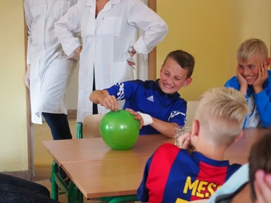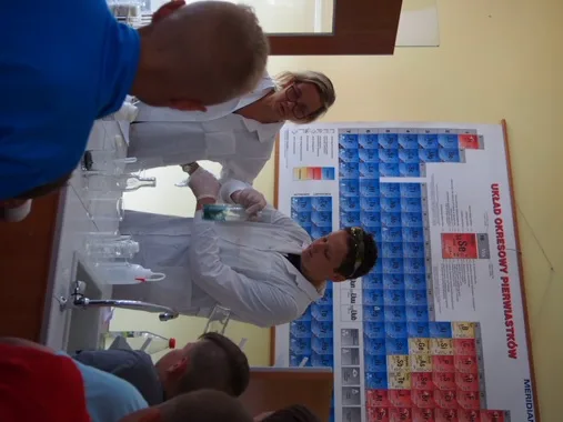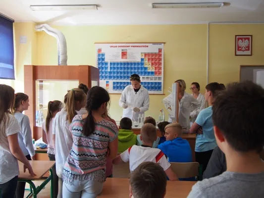 W trakcie pokazów chemicznych uczniowie z klas II gimnazjum udowodnili, że chemia jest nauką nie tylko ciekawą, ale i też… zaskakującą! Wykonali eksperymenty pokazowe, które wykonywali na zajęciach koła chemicznego i projekcie egmnazjalnym. Młodsi koledzy z klas V i VI SP poznali zasady jakie obowiązują w pracowni chemicznej, mogli również zobaczyć jak należy przygotować się do samodzielnego wykonywania doświadczeń w laboratorium chemicznym. Ponadto uczniowie przeprowadzili także samodzielnie doświadczenia fizyczne. Pod koniec uczestnicy zajęć laboratoryjnych wzięli udział w konkursie, który podsumował zdobytą przez nich wiedzę i umiejętności. Podczas wykonywanych eksperymentów wielokrotnie dało się słyszeć z widowni okrzyk zdumienia, zadziwienia, czy usłyszeć brawa.