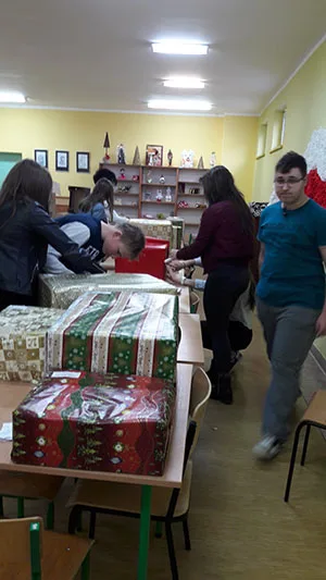 Rodziny, wybierane przez wolontariuszy fundacji WIOSNA, często borykają się z problemem braku środków do życia, a ich obecna sytuacja ekonomiczna nie pozwala na godne życie. Dlatego też, jak co roku, uczniowie wraz z rodzicami, nauczyciele oraz pracownicy GZSP postanowili pomóc rodzinie, której spokojne dotąd życie uległo drastycznej zmianie przez chorobę członków tej rodziny. Wszystkie osoby zaangażowane w akcję dołożyły wszelkich starań, aby spełnić prośby rodziny o żywność, środki czystości czy artykuły szkolne. Między tymi podstawowymi produktami znalazły się także upominki dla każdego z członków rodziny, które mamy nadzieję, że pozwolą choć na chwilę zapomnieć o codziennych problemach.