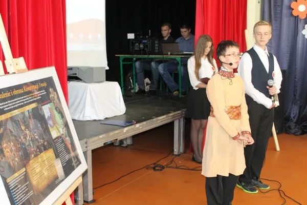 Uczniowie z Gminnego Zespołu Szkolno-Przedszkolnego w Czarnym Borze uczcili 224. rocznicę uchwalenia Konstytucji 3 Maja. Z tej okazji zorganizowano uroczysty apel, podczas którego uczniowie klas Va,VIa szkoły podstawowej oraz I a gimnazjum przedstawili program artystyczny pt.: Duch Historii. Podczas apelu mogliśmy także usłyszeć piosenkę wykonaniu Magdaleny Miary, uczennicy klasy II nauczania początkowego, która zaśpiewała utwór patriotyczny pt.: Polska Flaga. Z kolei chór fletnistów z klasy I nauczania początkowego wykonał utwór muzyczny pt.: Wiosenny deszcz. W tym dniu wszystkim uczniom towarzyszyły biało –czerwone barwy.