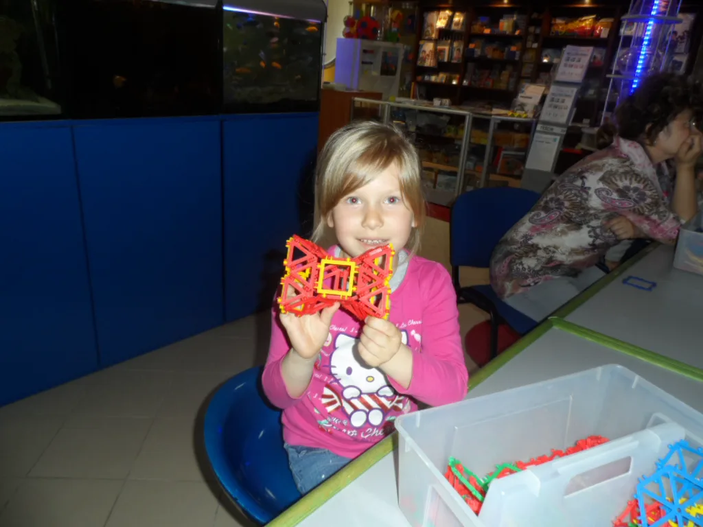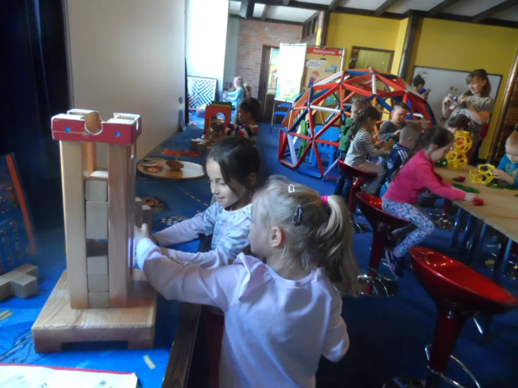Otrzymały odpowiedź na pytania „dlaczego?” - dlaczego wiele naturalnych wytworów przyrody ma symetryczną budowę? Dlaczego płatki śniegu krystalizują zawsze w sześciu kierunkach? Dlaczego pszczoły dla swojej komórki wybrały kształt sześciokąta foremnego? W jaki sposób rozchodzi się głos? Dzieci miały możliwość doświadzcyć wielu zasad mtematycznych poprzez zabawę na zgromadzonym materiale edukacyjnym. Dużym zainteresowaniem cieszyły się zabawy z lustrami, układanki, mozaiki i oczywiście budowle z klocków lego. Pobyt w tym bardzo ciekawym miejscu dostarczył dzieciom wiele pozytywnych wrażeń. Była to wspaniała przygoda z matematyką.